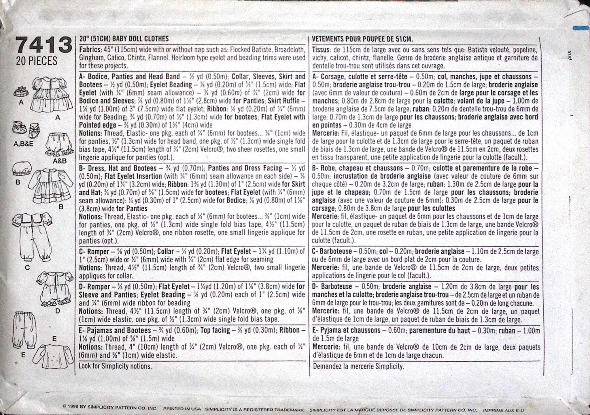 Baby Doll Clothes: This versatile pattern includes a charming array of outfits to dress up the doll in style. From playtime to bedtime, the pattern features essential pieces such as dresses, headbands, booties, hats, rompers, and pajamas. Each garment is thoughtfully designed to be both cute and functional, ensuring that your little one's doll is always dressed for any occasion. This pattern is perfect for crafters looking to add a personal touch to their baby doll's collection or create thoughtful handmade gifts. ©1996.