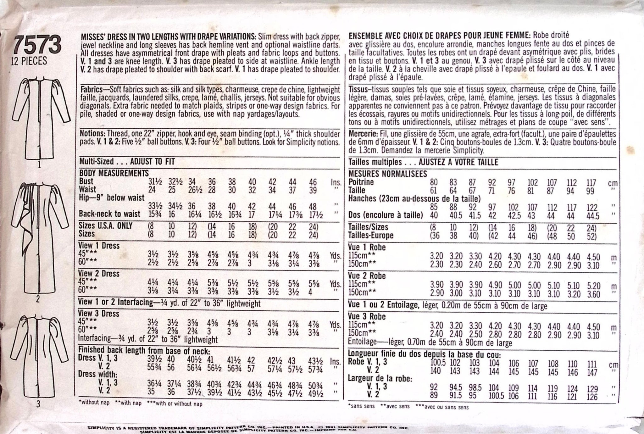 Misses' Dress: Get ready to stand out at your next event with this vintage sewing pattern for Simplicity 7573! Perfect for a 90's themed party, this pattern features a misses evening dress in two lengths, with the option to add drape variations for a unique and personalised look. A must-have for any sewing enthusiast looking to make a statement! ©1991. RARE FIND!