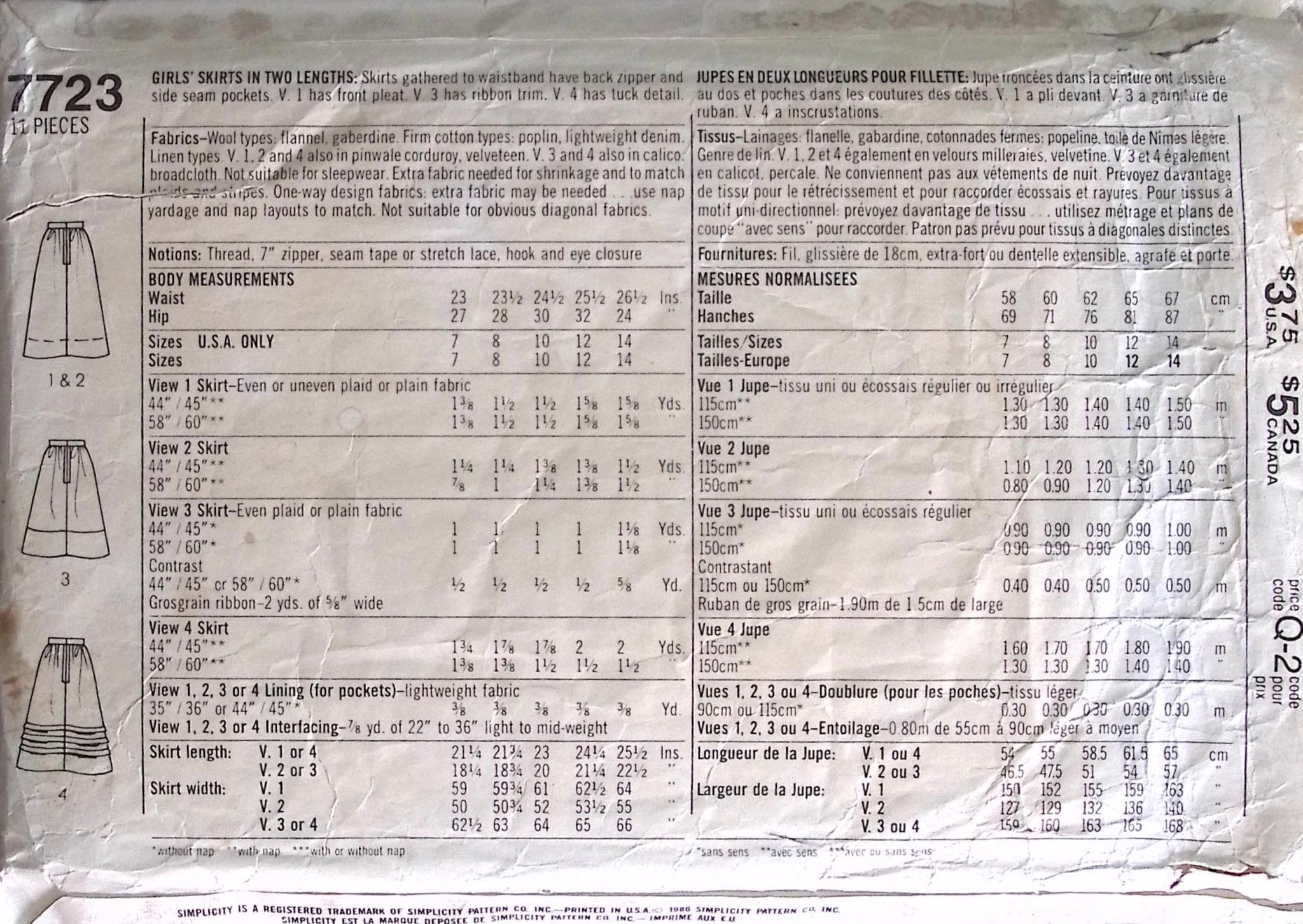 Girl’s Skirt: Featuring two lengths, a gathered waistline, and options for a front pleat, ribbon trim, or tuck detail. Keep your essentials close with side seam pockets and an easy back zipper. Perfect for adding a playful touch to any outfit. ©1986.
