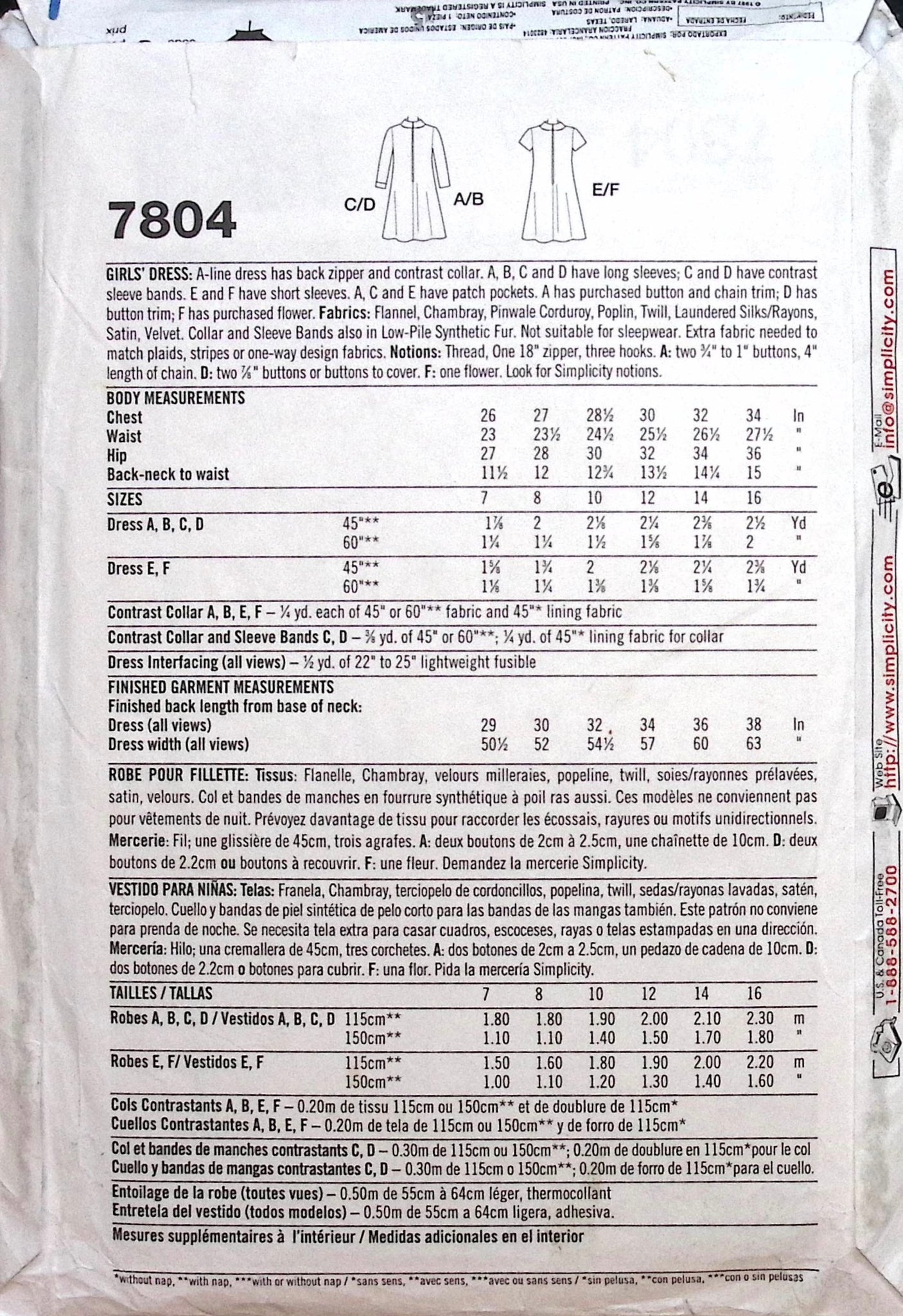 Girl's Dress: It features a back zipper and a contrast collar, providing a charming accent. The dress comes with long sleeves, with the option to add contrast sleeve bands for a stylish touch. Alternatively, short sleeves offer a different look. Additional options include patch pockets, allowing for practicality and style. For embellishment, you can choose between purchased button and chain trim, button trim, or purchased flowers, adding unique details to the dress. ©1997.