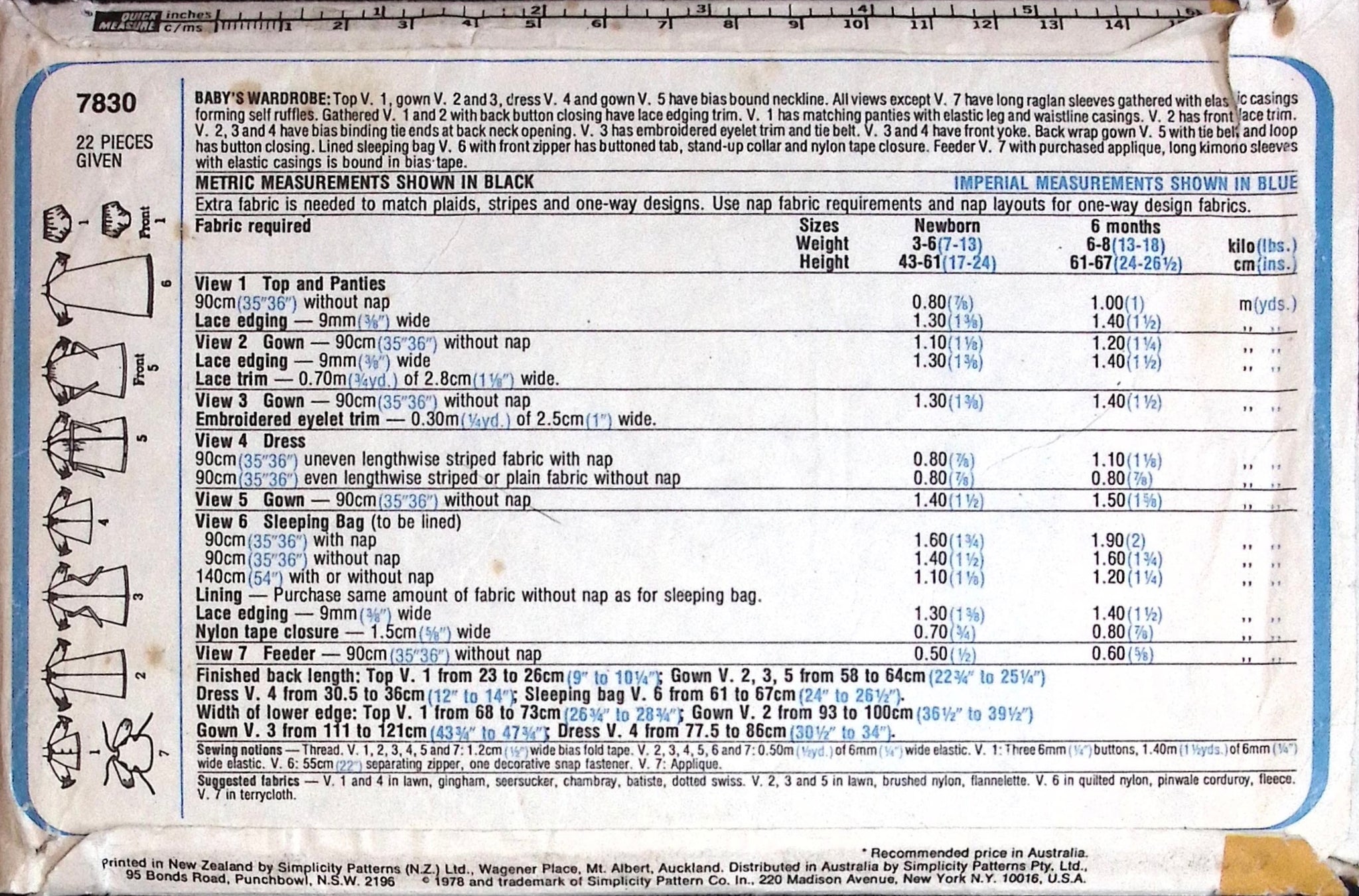 Baby’s Wardrobe: The ’70's baby wardrobe pattern offers a variety of adorable and practical garments for little ones. From cozy sleepers to cute outfits, this pattern includes options such as nighties, sleepers, dresses, bib, panties, and gown. With features like cute embellishments of ribbons or appliqués, you can create a charming and comfortable wardrobe for your little bundle of joy. ©1978.