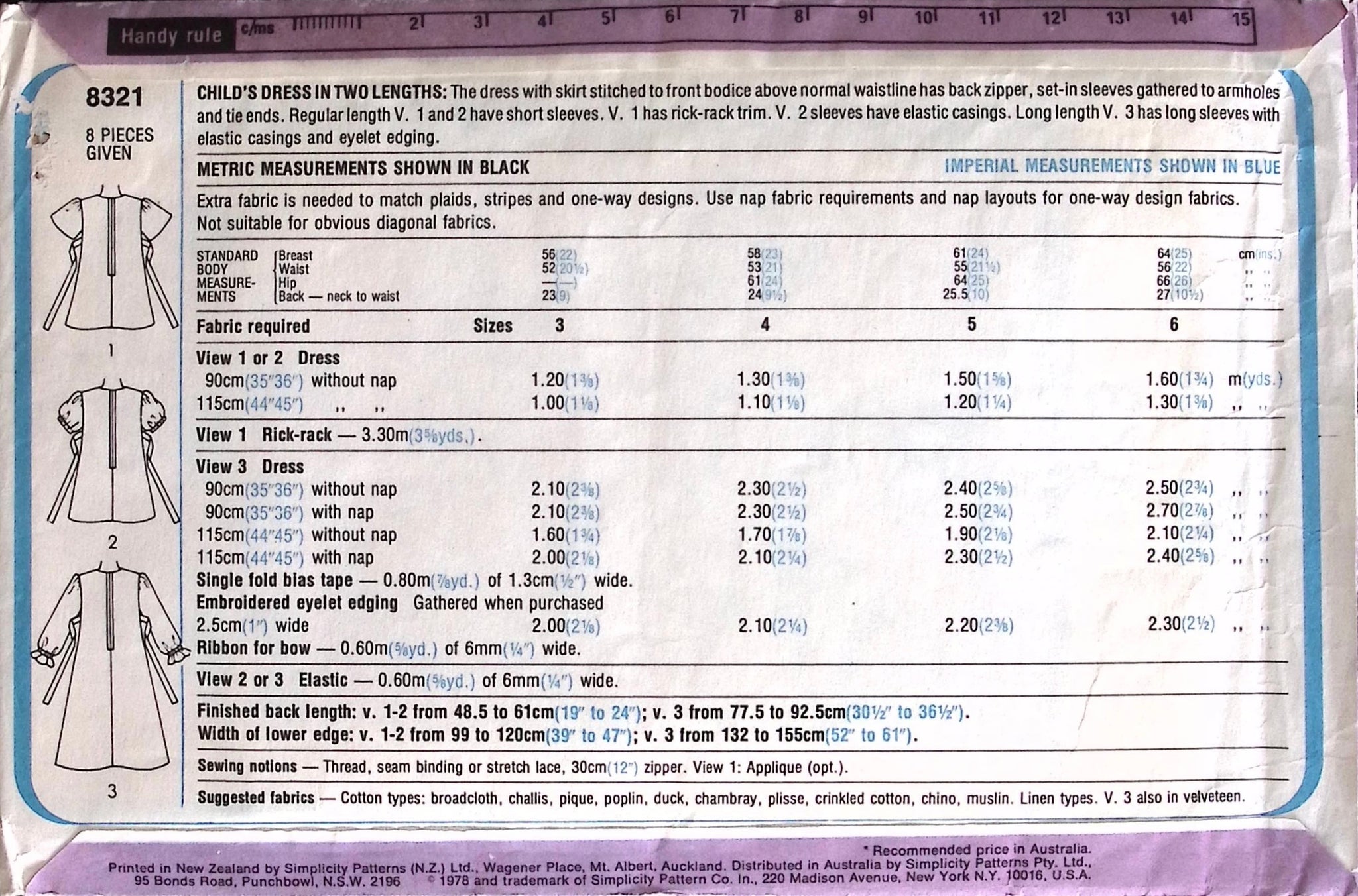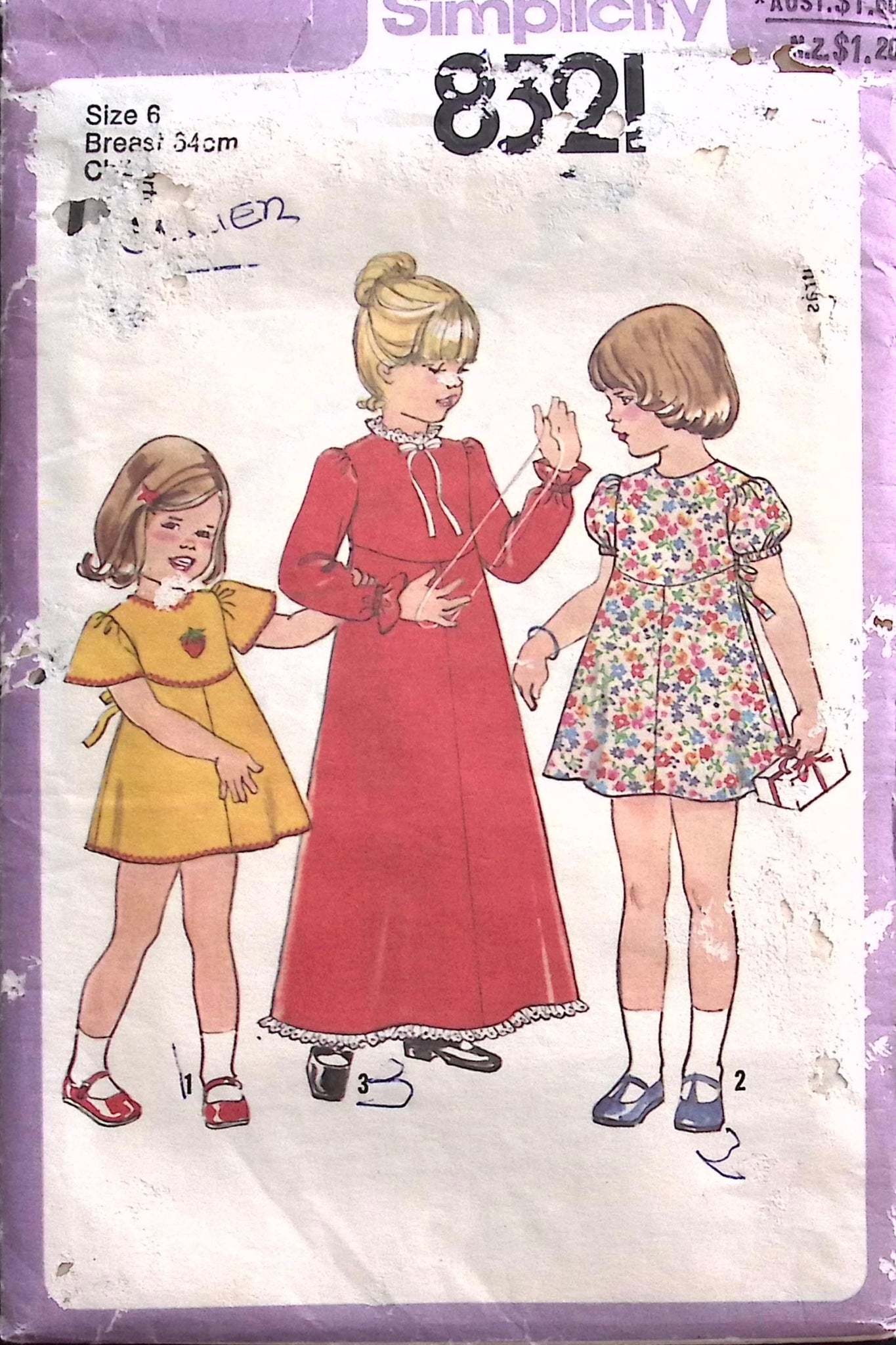 Girl’s Dress: This vintage Girls Dress in Two Lengths features a back zipper, gathered sleeves, and tie ends for a playful touch. Choose from regular or full length with short or long sleeves finished with rick rack trim or eyelet edging. Perfect for a playful day out or a vintage-inspired event. ©1978.