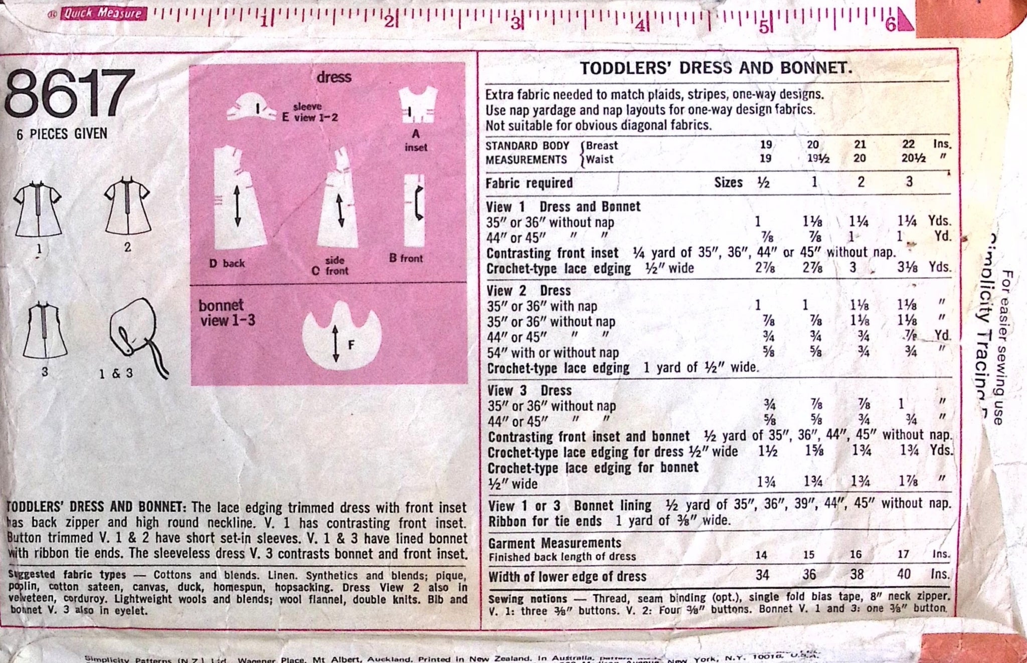 Toddlers' Dress & Bonnet: Step back in time with this Vintage Sewing Pattern: Simplicity 8617. These adorable dresses and bonnets will have your toddler looking elegant and stylish. Choose from different variations and add lace, buttons, and ribbons for a touch of charm. ©1970.