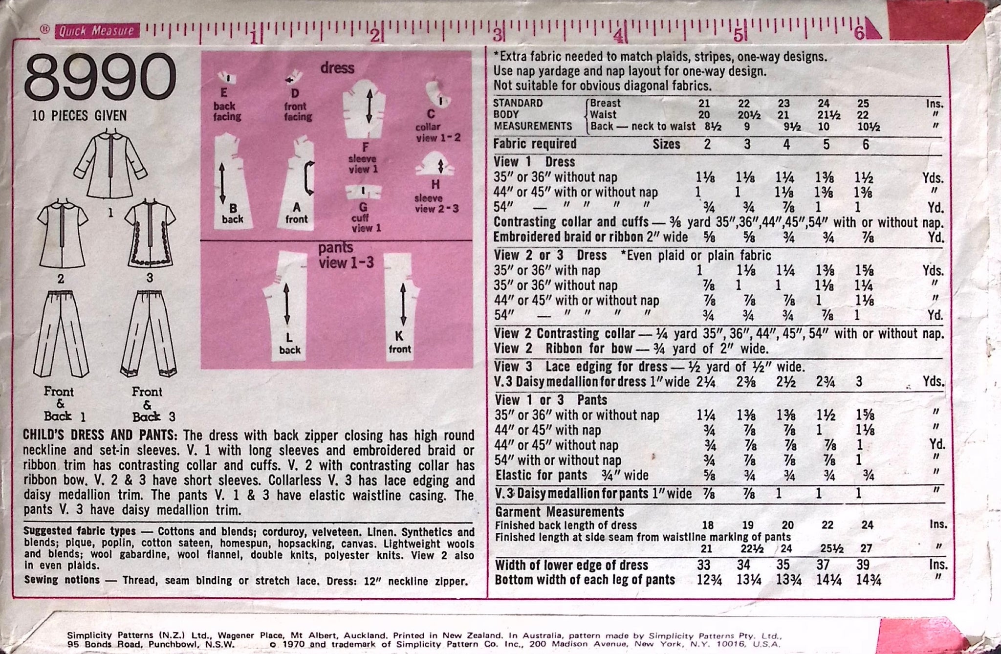 Child’s Dress & Pants: Get the retro look with this ’70's child's dress and pants! The dress features a high round neckline and multiple styling options, including long sleeves, embroidered trim, and collar or short sleeves. The pants are effortless with a pull-on design and trim options. Perfect for kids with a vintage flair! ©1970.