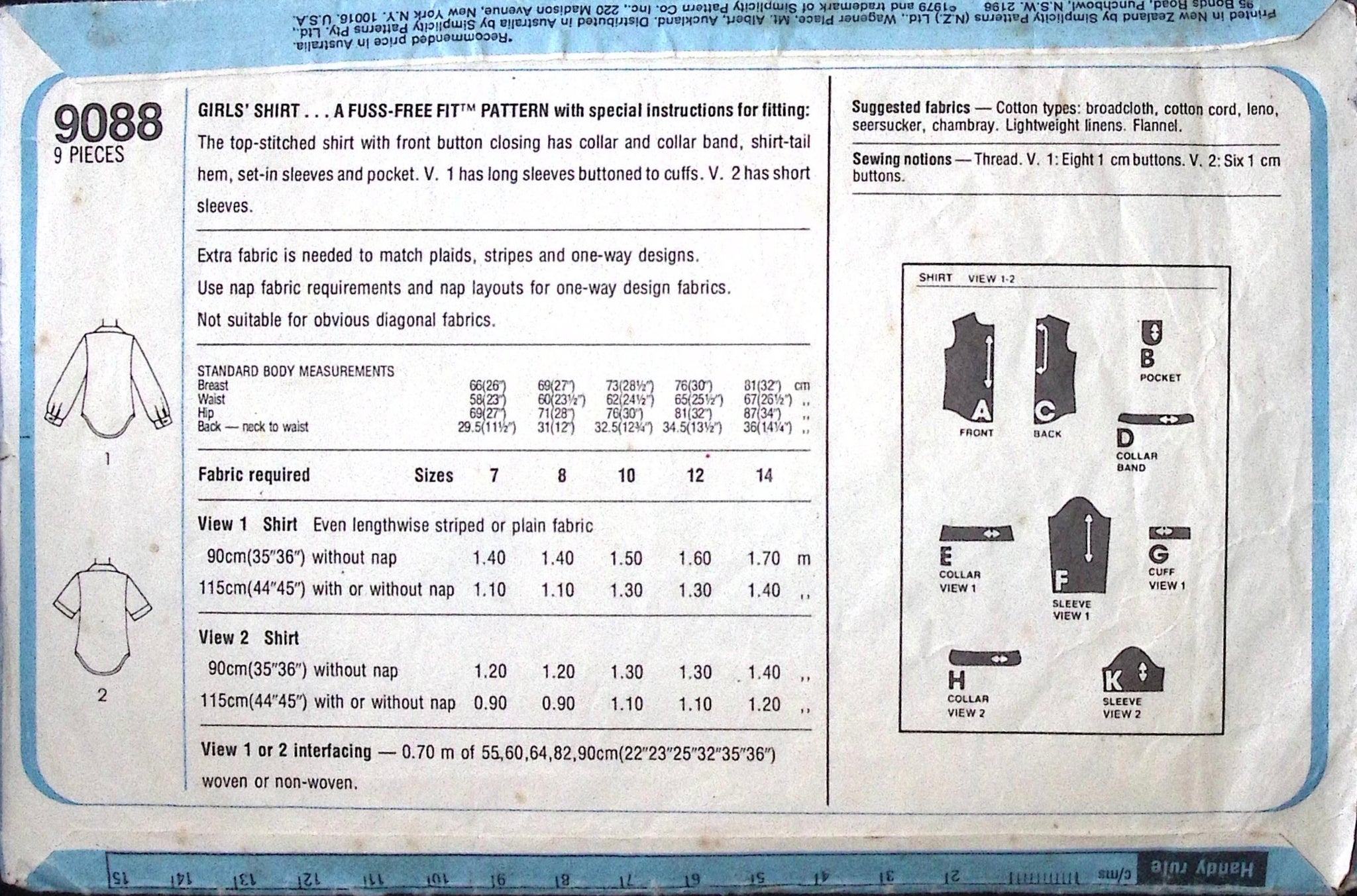 Girls' Shirt: Elevate her wardrobe with this top-stitched shirt featuring a front button closure, collar, and collar band. The shirt is designed with a shirttail hem, set-in sleeves, and the option for a pocket on either short or long sleeves. Create a stylish and versatile addition to her outfits with this well-crafted and customisable girls' shirt. ©1979.