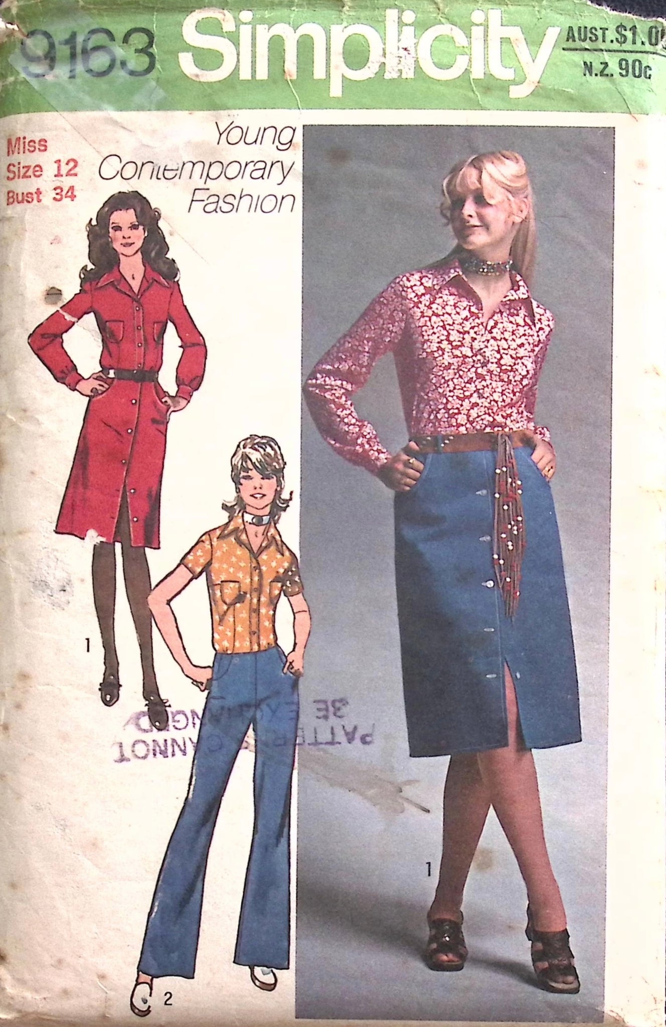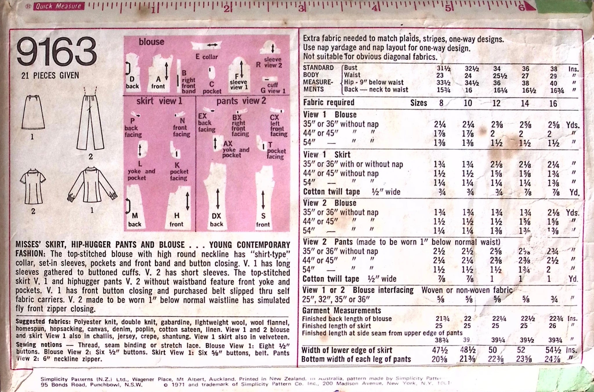 Misses’ Blouse & Pants: Relive the fashion of the 70's with this pattern for hip-hugger pants and blouse set. Perfect for the modern woman looking for a vintage, playful look that exudes youthful style. Step out in confidence and style with this contemporary fashion statement. ©1971.
