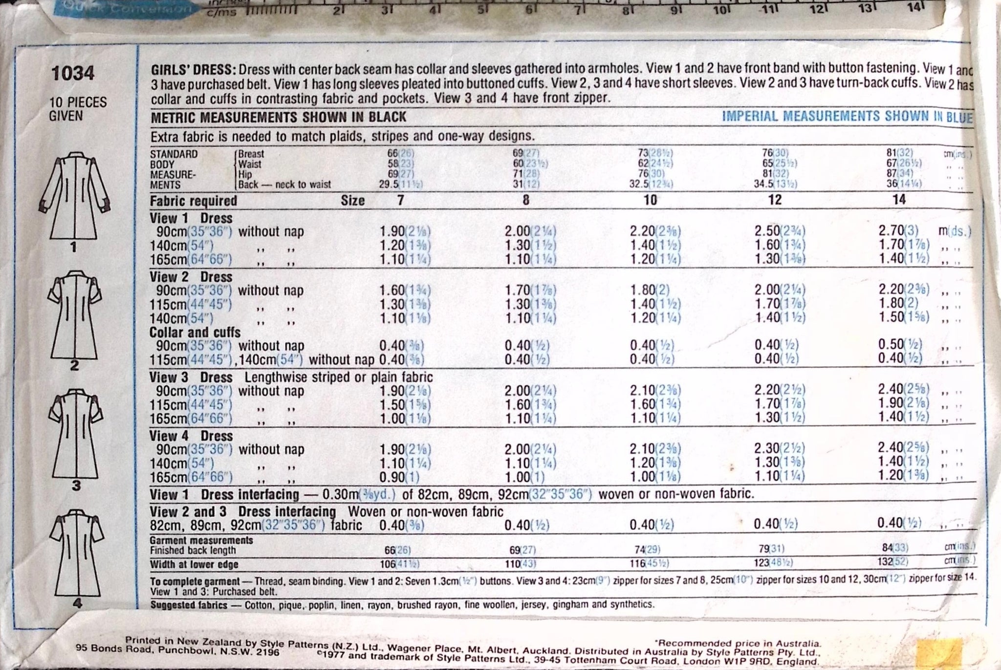 Girl's Dress: This versatile pattern features options for both notched or pointed collars, allowing for customisation to suit personal style preferences. Additionally, choose between long or short sleeves, providing flexibility for different seasons or climates. Whether for a formal school setting or everyday wear, this pattern offers timeless elegance and functionality, ensuring comfort and style for your little one's school wardrobe. ©1977.
