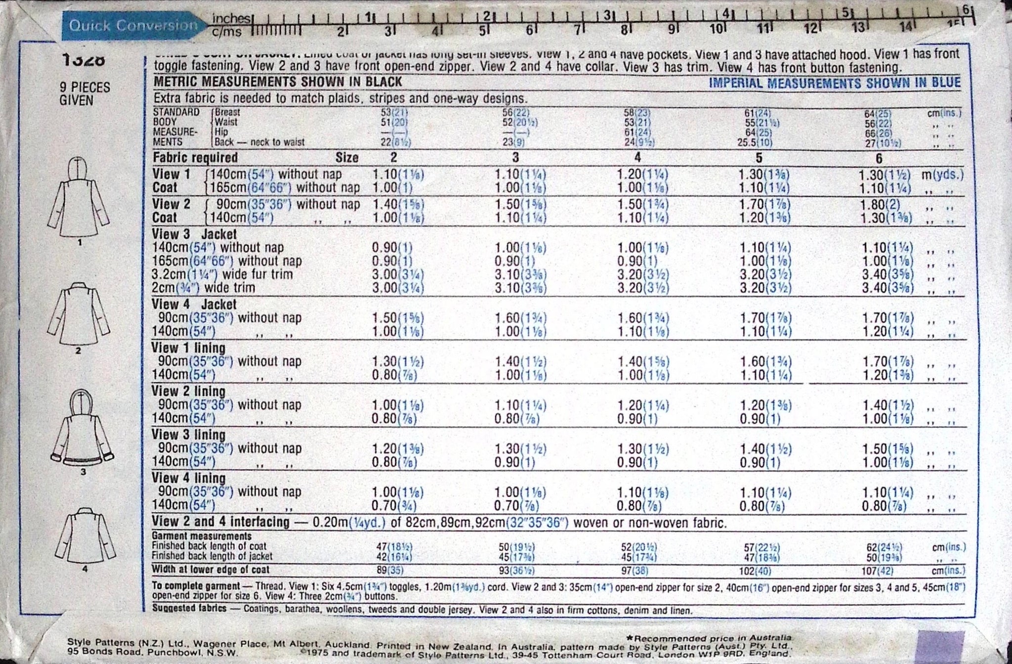 Child’s Coat or Jacket: A charming and timeless design perfect for your little one's wardrobe. This vintage pattern features a lined construction and long set-in sleeves, providing warmth and comfort. Choose from various options such as pockets or an attached hood to tailor the jacket to your child's needs. Elevate the design further with your preferred closure style, including front toggle closure, open-end zipper, or classic button closure. The pattern also offers the choice of adding delightful trims for a personalised touch. Ideal for chilly days and stylish outings, this pattern brings a touch of retro flair to your child's outerwear collection. ©1975. RARE FIND!