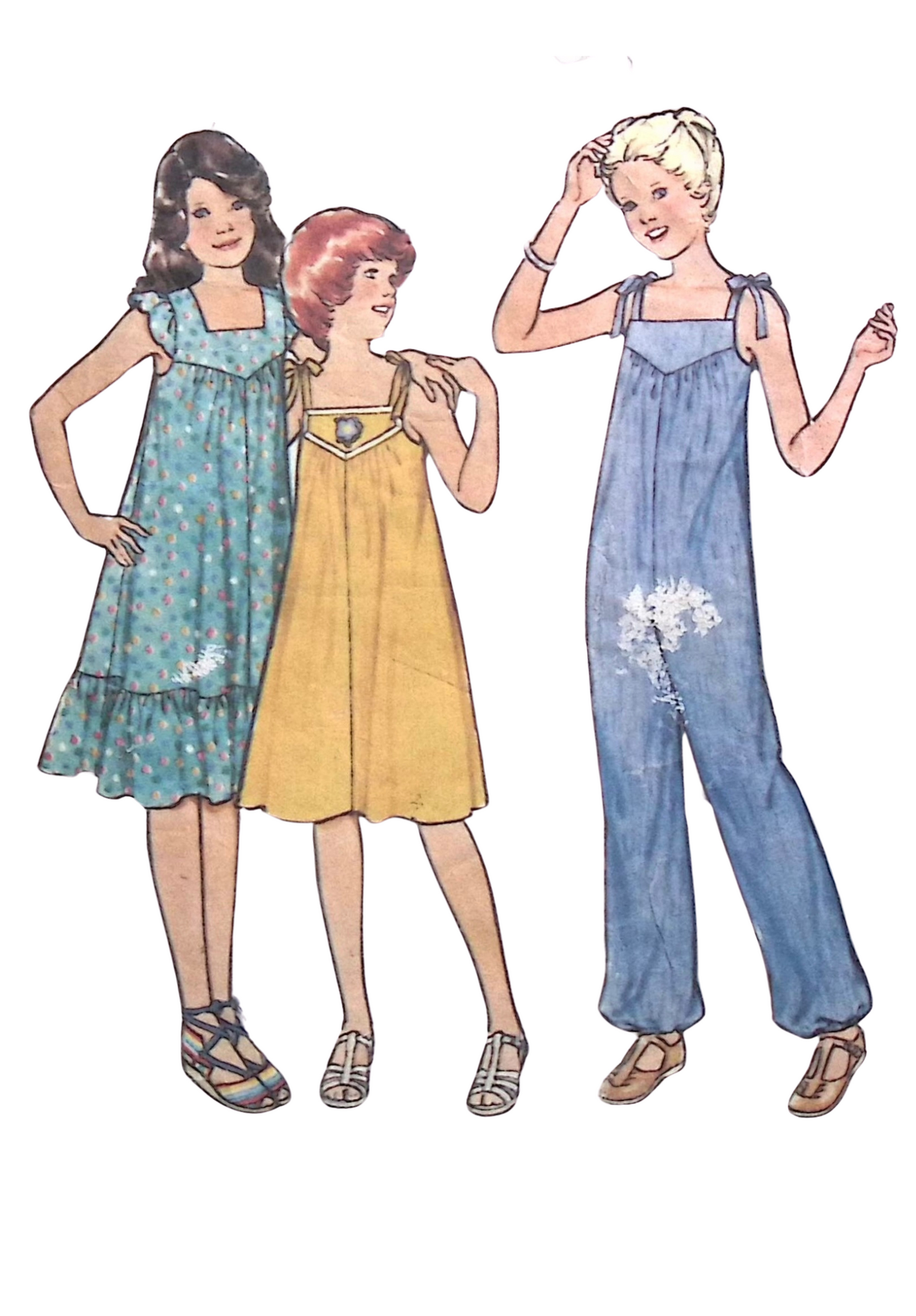 Girls’ Dress & Jumpsuit: Whether for playtime adventures or special occasions, the pattern offered both a dress and a jumpsuit, allowing young girls to express their individuality through fashion. With the freedom to choose between the two styles, they could embrace the trends of the era in their own unique way. ©1979.