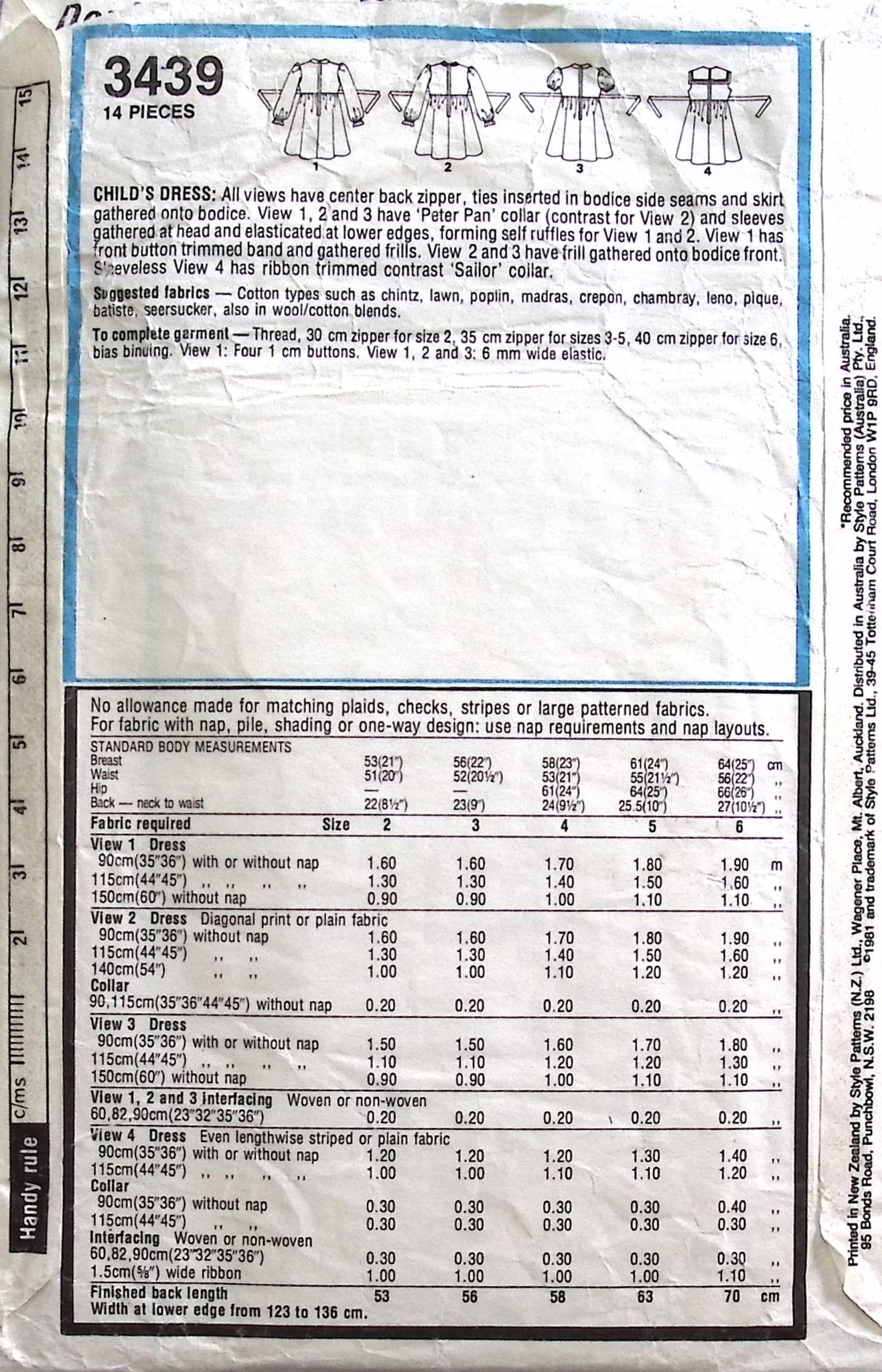Child’s Dress: This delightful dress features collar variations, adding a touch of personality to the neckline. With ties inserted into the bodice side seams, it offers a unique and playful detail. The skirt gathers onto the bodice, creating a sweet and feminine silhouette. Choose from options of long sleeves, short sleeves, or sleeveless styles to suit any occasion. Whether it's a casual day out or a special event, this dress is sure to become a wardrobe favourite for your little one. ©1981.