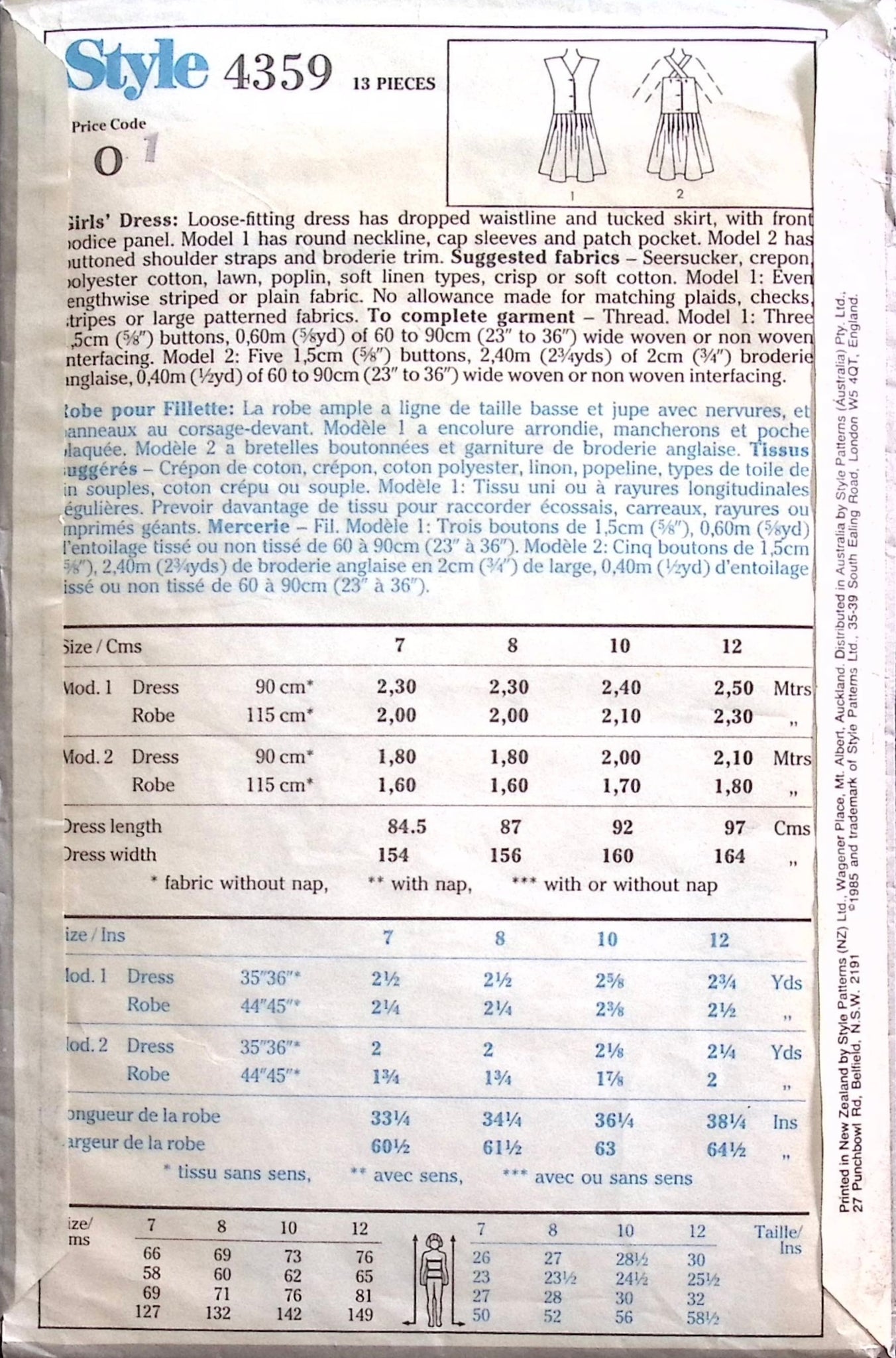 Girl’s Dress: A loose-fitting dropped waistline and a tucked skirt for a touch of elegance. This dress features a front bodice panel, adding a stylish detail to the design. Choose from various options to customise your dress, including a round neckline, cap sleeves, patch pockets, buttoned shoulder straps, and trim, allowing you to create a unique and personalised look. Whether you're going for a classic or modern vibe, this pattern offers endless possibilities for creating adorable dresses that your little one will love to wear. ©1985.