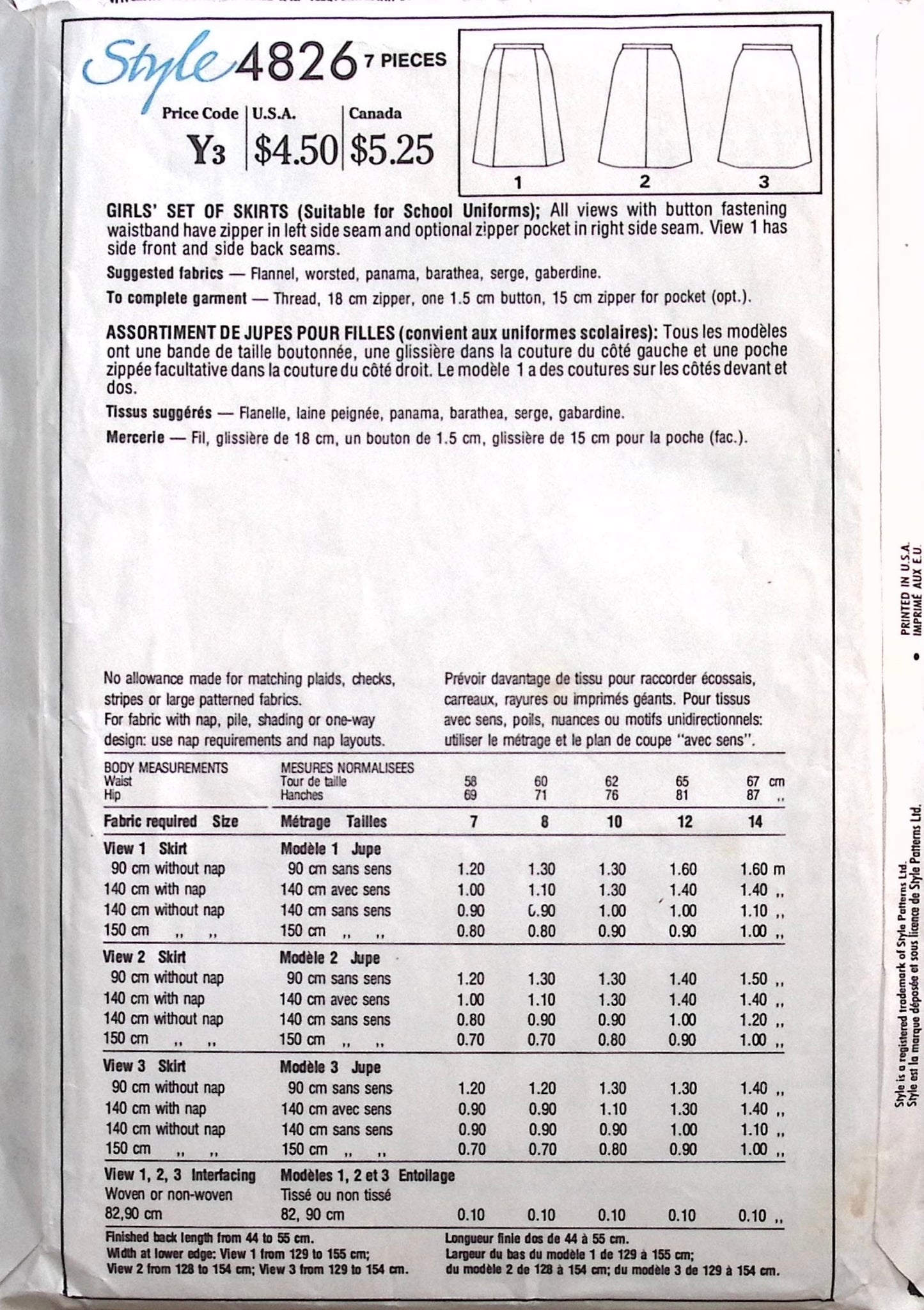 Child’s Skirts: (ideal for school uniforms) These skirts feature a button fastening waistband for ease of wear and a classic look. For added convenience, there's an optional zipper on the left side, ensuring a secure fit. Additionally, you have the option of adding a zipper pocket on the right seam for storing small essentials. With these customisable features, you can create skirts that meet the requirements of any school uniform while providing functionality and style for your child's everyday wear. ©1986.
