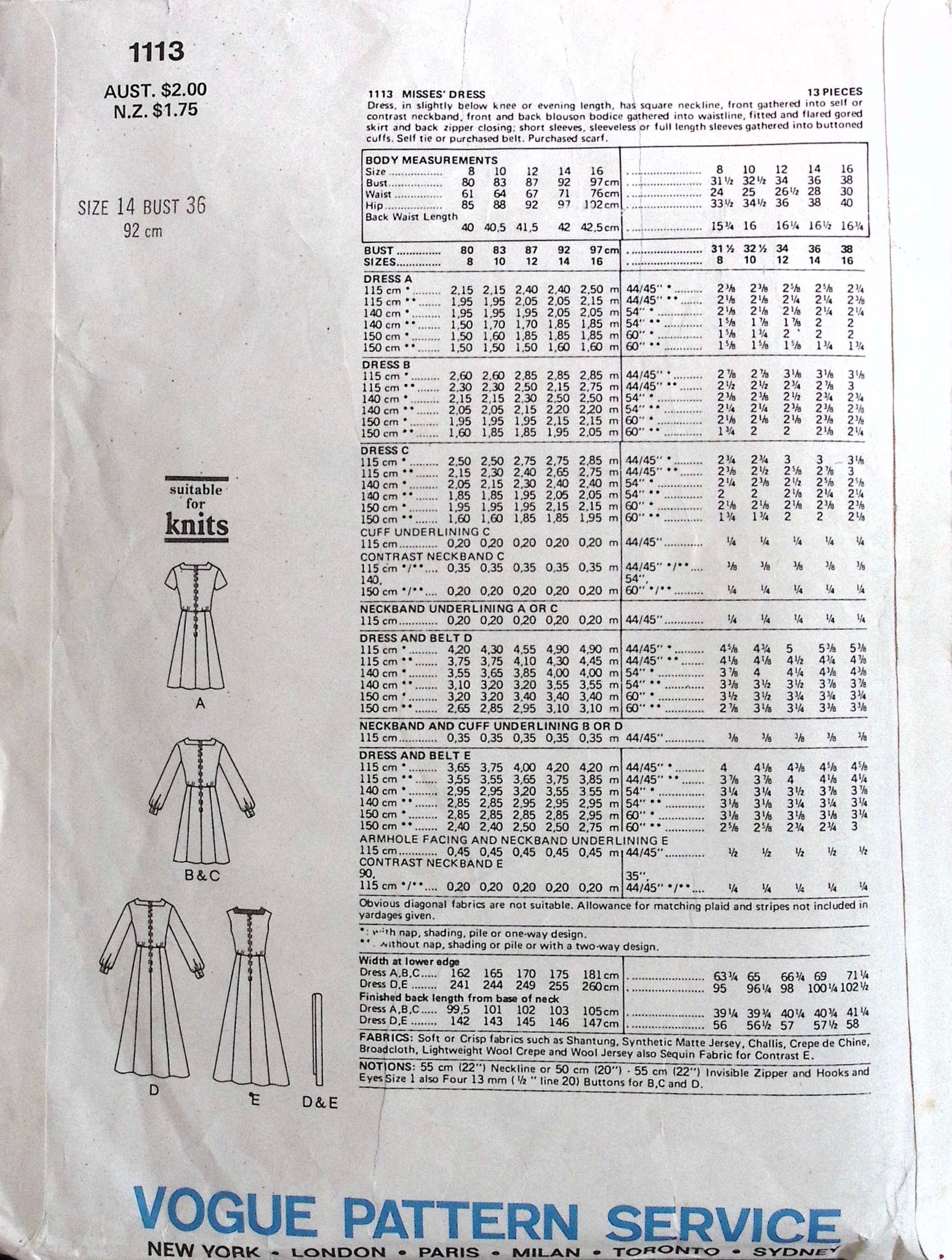 Misses’ Dress: Transport yourself to the stylish era of the ‘70s with this vintage sewing pattern. The dress, available in a slightly below knee or evening length, features a square neckline, with the front gathered into a neckband for a flattering detail. The back boasts a blouson bodice gathered into the waistline, creating a distinctive silhouette. The dress is fitted and flared, with gored cuffs adding a touch of flair. Complete the ensemble with a self-tie for a chic and versatile look suitable for various occasions. Embrace the retro charm and showcase your sewing skills with this ‘70s dress pattern. ©1970's.