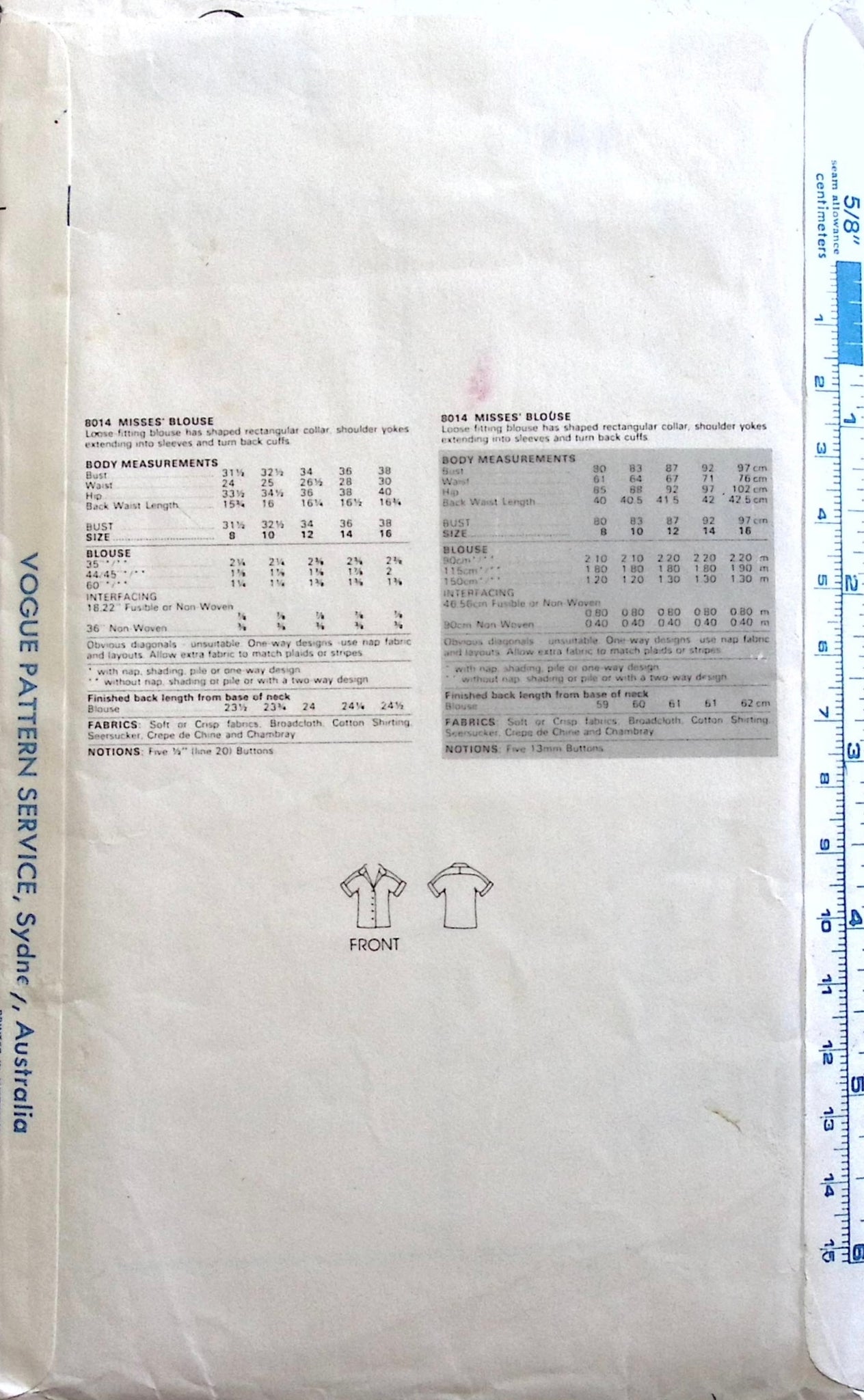 Misses’ Blouse: This loose-fitting blouse features a shaped rectangular collar, adding a unique and modern touch to the design. The shoulder yokes extend seamlessly into the sleeves, creating a flattering silhouette and adding visual interest. Complete with turn-back cuffs for a classic finish, this blouse captures the essence of 1980s fashion with its effortless charm and timeless appeal. ©1982.
