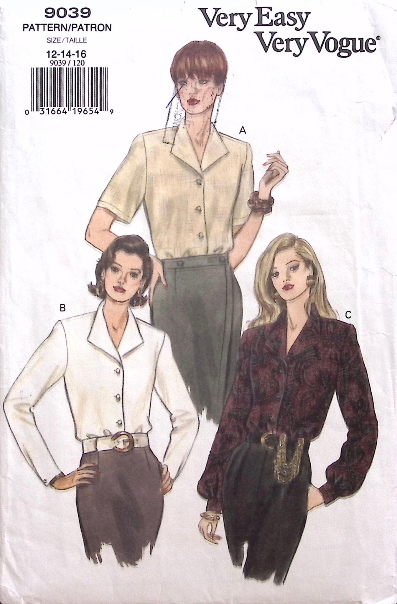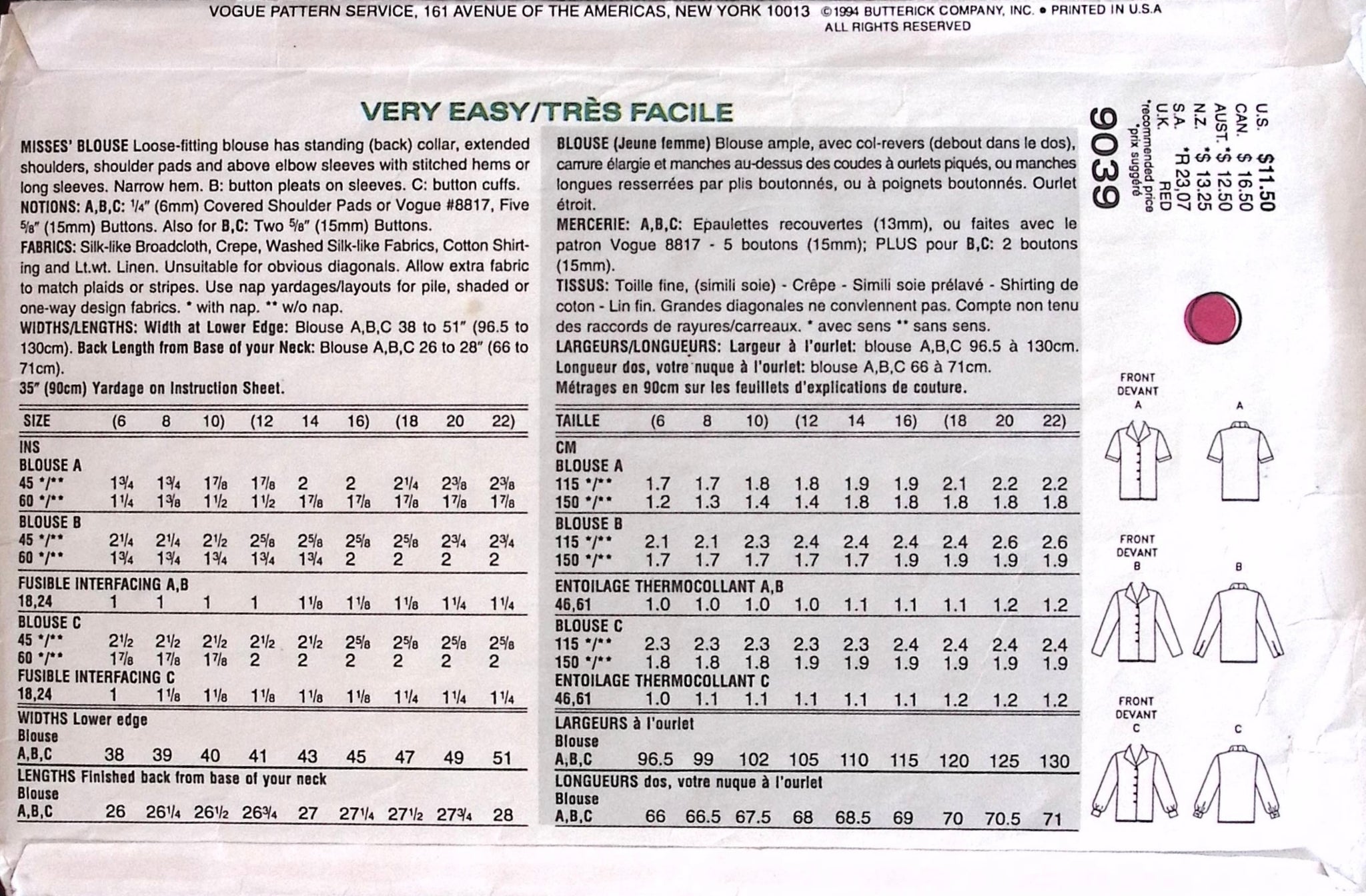 Misses' Blouse: Add a touch of vintage charm to your wardrobe. This pattern includes a loose-fitting blouse with a standing collar, extended shoulders, and various sleeve options. With a nod to retro fashion, this versatile piece will elevate any outfit. ©1994.